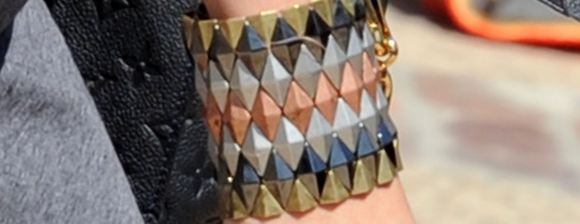 Pulseira com cores um pouco apagadas, azul, marrom, cinza, ajudarão a dar um pouco de cor no look.